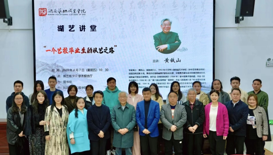 黄铁山深情回顾了自己的从艺之路,尤其是以湖艺为起点的学习经历与此后的工作经历,他着重围绕“在学校如何学习”和“步入社会后如何工作”这两个主题,跟现场师生分享了自己的心得体会。谈到在校学习,黄铁山向同学们提出三点希望:一是要确立初心,要走好学艺的第一步,树立远大理想才能不懈奋斗;二是要勤学苦练,任何艺术成就都不是轻易得来的,要坚信书山有路勤为径;三是要注意方法,例如学习美术就要锻炼自己的观察力和表现力,方法得当才能取得成就。谈到步入社会后的工作问题,黄铁山寄语湖艺师生,要脚踏实地、紧跟时代,要始终坚持以人民为中心的创作导向,善于在生活中积累和寻找创作的素材,要坚持反映时代精神与民族精神,要主动追求现代化、高质量的艺术创作,贡献更多社会和人民需要的优秀的艺术作品。