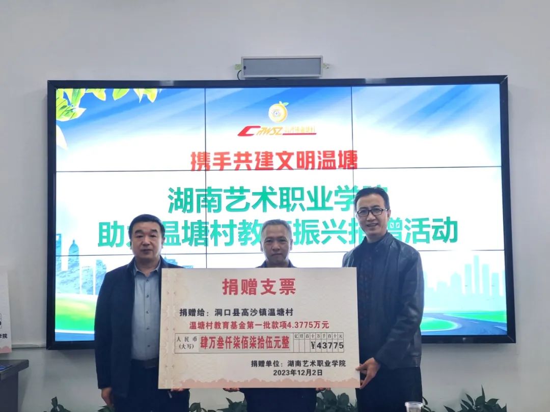 在学校党委行政和全校师生的关心支持下,此次SUNBET分别向“温塘村同心艺术团”“温塘村教育基金”捐赠价值10万元的舞台灯光、音响、服装和第一批43775元的教育基金款项。