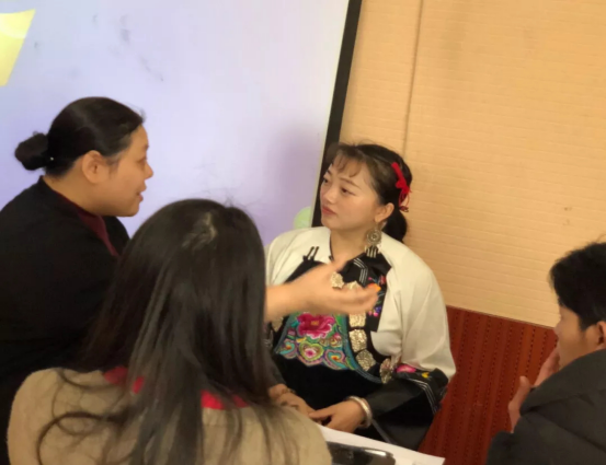 “小老师”吴廷翠同学是第一次登上讲台。只见她丝毫不怯场,语态自然亲切,教学落落大方,银铃般悦耳动听的歌声很快就把在场的老师和同学们带入苗歌的优美旋律和动人的生活情境中。凭借课前的充分准备和自身扎实的基本功,在面对声乐老师们饶有兴致的各类提问时,吴廷翠同学都能一一地作出详尽的解答。