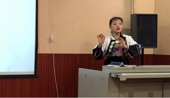 课堂是师生自由探索人生意义与生活方式的无限可能的领地。课程的设计与教学创新、学生核心素养指标是指导课程改革的方针与根本导向。为了提高课堂教学的有效性,培养学生自主探究、合作学习、主动学习的能力,充分发挥学生的主体地位,确保让学生做学习的主人,3月23日上午,学院音乐系精心组织了一场全新的教学体验,变教为诱,变学为思。讲台上授课的由学院教师变成了一位清纯美丽的苗族姑娘——16级高职在校生,非物质文化遗产湘西苗族民歌传承人吴廷翠同学。