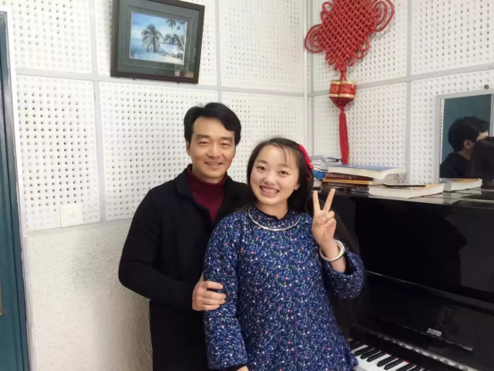 吴廷翠同学与辅导她声乐专业的黄新平教授在琴房合影