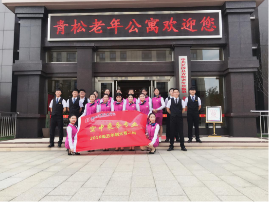 5月 16日,社文系16中职空乘2班18名同学赴青松老年公寓开展爱心活动。