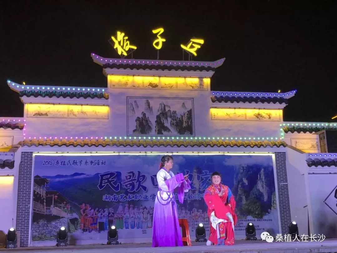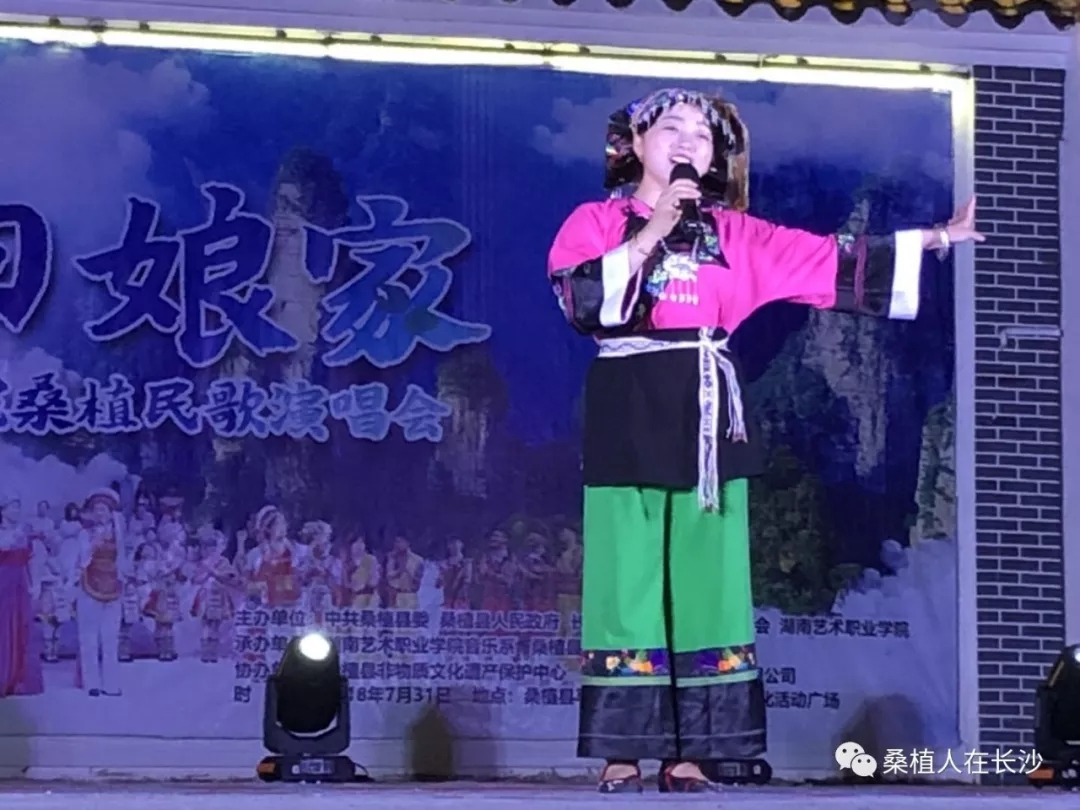 晚上是本次活动的重头戏。“民歌回娘家—SUNBET申搏桑植民歌演唱会”在马合口乡梭子丘白族文化广场举行。该演唱会分《水畔》、《青山》、《大路》、《新唱》四个篇章。该院音乐系梁瑛、田里、安永明、郑萍、张敏敏等十多位声乐副教授、讲师登台献艺,400多名观众欣赏到了由专业老师们演唱的《冷水泡茶慢慢浓》、《门口挂盏灯》、《姐儿门前一树桃》、《砍条大路歌就来》、《马桑树儿搭灯台》、《四季花儿开》等老桑植民歌。并聆听到了《新棒棒捶在岩头上》、《新马桑树儿搭灯台》、《桑植之恋》等新创作的歌曲。优秀学生代表吴廷翠、郑海玲也登台与老师们一起演唱,展现了该院良好的教、学之风。本台晚会是湖南艺术职院十余年来根植基层、致力于桑植民歌发掘、研究、教学的成果汇报与展示。院教务处处长、声乐学教授黄新平动情地说:“来到桑植,我们怀着虔诚和敬畏之心,因为桑植是民歌圣地!我们和桑植的合作已有十年以上,我们非常努力,也有一些小小的成绩。但我们做得还远远不够,今后我们将和政府及有关部门更密切的合作,使桑植民歌的保护、传承和发展越来越好!”