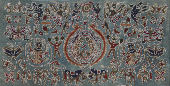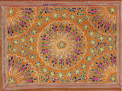 苗绣讲究对称美、均衡美。突出了现代的形式美法则,无论上下左右位置的图形、色彩、空间,都讲究对称、均衡;并且整个绣品不留空白,用色大胆,大红大紫,鲜亮夺目。他们用装饰纹样来美化生活,借丰富的物象来反映喜庆、吉祥的生活内容,表达自己的感情和内心的憧憬。
