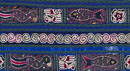周朝晖在讲座中介绍了苗绣艺术的起源、刺绣技法以及苗绣的价值。苗绣是指苗族民间传承的刺绣技艺,是苗族历史文化中特有的表现形式之一,苗族刺绣贯穿于苗族女性的一生,是女性们毕生的追求和精神的寄托,也是广大苗族妇女勤劳智慧的结晶。没有文字的苗族,“以针为笔,以线为墨,以布为纸”,通过苗族女性独特的、浪漫自由的审美和与生俱来的灵巧双手将苗族历史、文化、神话、传说、宗支、信仰、个性、以及生活中所见的一切美好的事物,都记载在了服饰上,也让苗绣承担了沉重的历史使命。