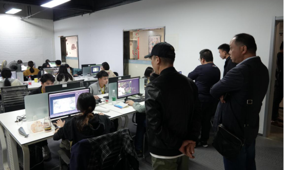 随后,考察组一行对正在时光坐标公司烟台实训基地实习的影视系同学们进行了看望慰问,听取了他们的实习汇报,并鼓励他们珍惜机会、提升素质,圆满完成实习任务,展现湖艺人“德艺双馨、敢为人先”的昂扬风貌。