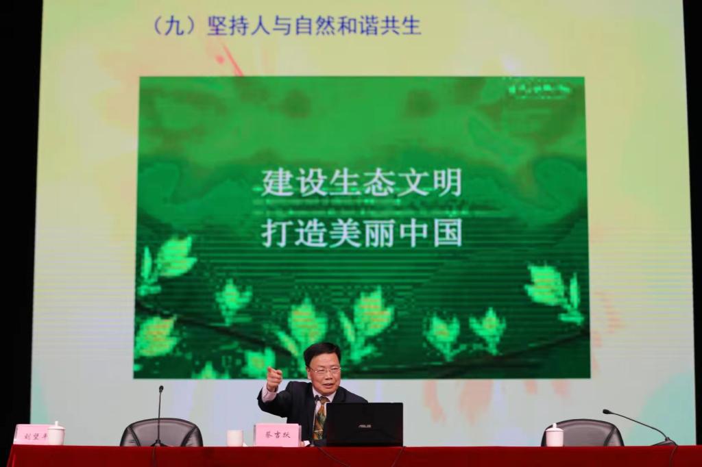 随后,蔡吉跃教授以《学深用好党的创新理论 奋力争当德艺双馨模范》为题,为全系党员师生作学习辅导。他从时代背景、内涵体系、理论品格、历史贡献、实践要求、学以致用走在前列等六个方面,结合建党百年历史,系统梳理了习近平新时代中国特色社会主义思想,深入浅出引导大家学党史、颂党恩、听党话、跟党走、敢担当、做表率,发扬革命传统,争取更大光荣。