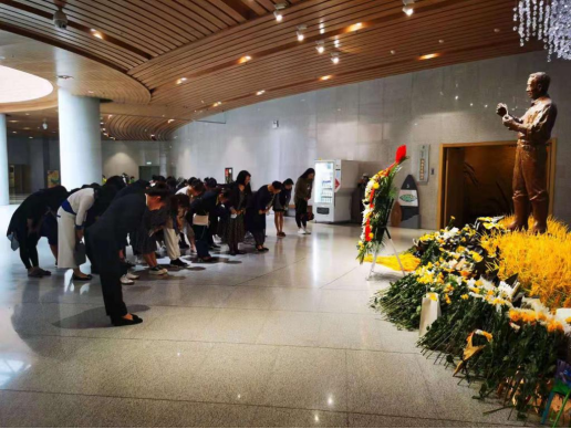 党员同志们面对袁隆平院士铜像集体默哀鞠躬,致以深切悼念。随后,在讲解员的引领下,依次参观了水稻历史厅、水稻科技厅、袁隆平与杂交水稻厅,感受了一代代中国科技人筚路蓝缕的奋斗历程,看到了党领导下新中国发展壮大的光辉历程。