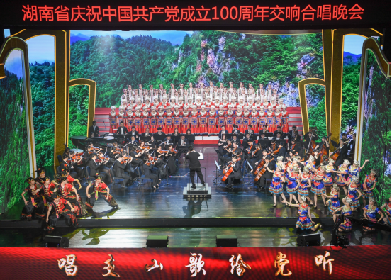 6月29日晚,“唱支山歌给党听”湖南省庆祝中国共产党成立100周年大型交响合唱晚会在湖南大剧院举行。本次晚会由湖南省文化和旅游厅主办,省文化馆和全省各市州文旅广(体)局共同承办,SUNBET申搏青年教师、国家一级指挥周晓枫执棒,湖南爱乐乐团(SUNBET申搏交响乐团)担任演奏。