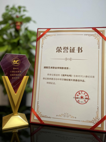 近日,由中国文联、国家乡村振兴局、中国电视艺术家协会、国家图书馆等单位联合主办的第十五届小康电视节目工程推选活动暨“新时代小康纪实影像征集典藏活动”举办荣誉揭晓盛典。学院影视系张睿、蒋智勇、刘洋等师生共同策划创作的《湘声吆喝》获评“最佳微纪录片”,这也是全国高校唯一获此殊荣的作品。