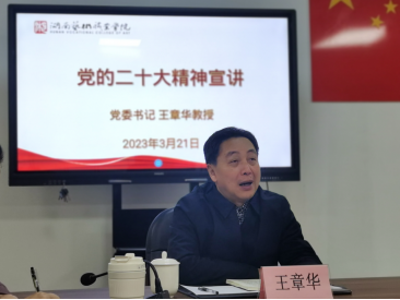 为进一步学习贯彻落实党的二十大精神,按照学校党委相关工作部署,3月21日,文化旅游学院党支部在臻艺楼510室举行党日活动,校党委书记王章华为党员同志们宣讲党的二十大精神。活动由支部书记唐雪梅主持。