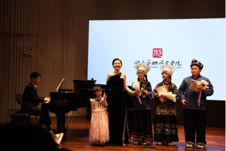 当天的音乐会现场,还有一个特别环节。3名来自大山深处的孩子——吴佳慧、龙茜梅、龙志华成为音乐会特邀嘉宾,与熊曼旋共同演唱一首《我喜欢》,这首歌是熊曼旋在凤凰县早岗村开展音乐公益支教时教给孩子们的歌,孩子们的歌声清澈明亮,与熊曼旋的合唱真挚感人,将音乐会推向了高潮,音乐厅内掌声久久回荡。