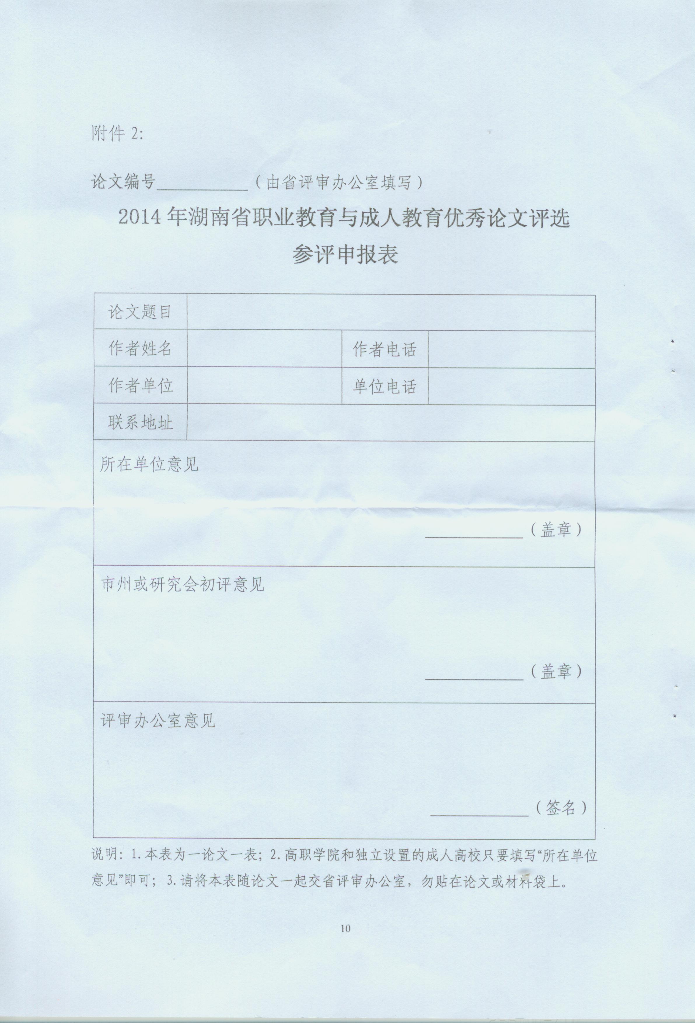 关于开展2014年湖南省职业教育与成人教育优秀论文评选活动的通知