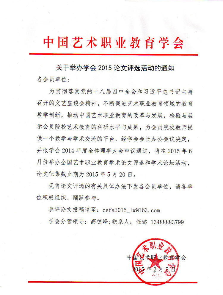 中国艺术职业教育学会关于举办学会2015论文评选活动的通知