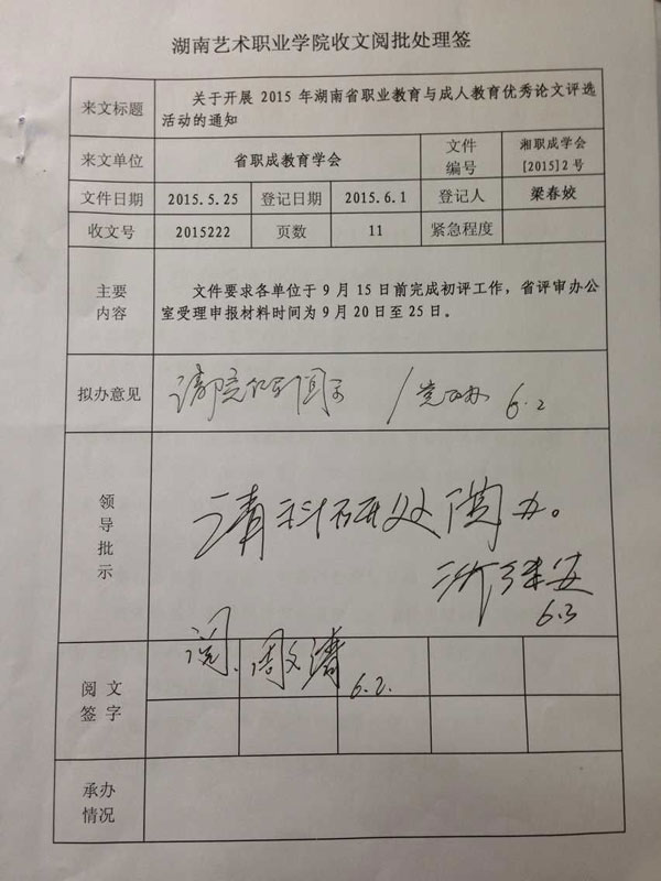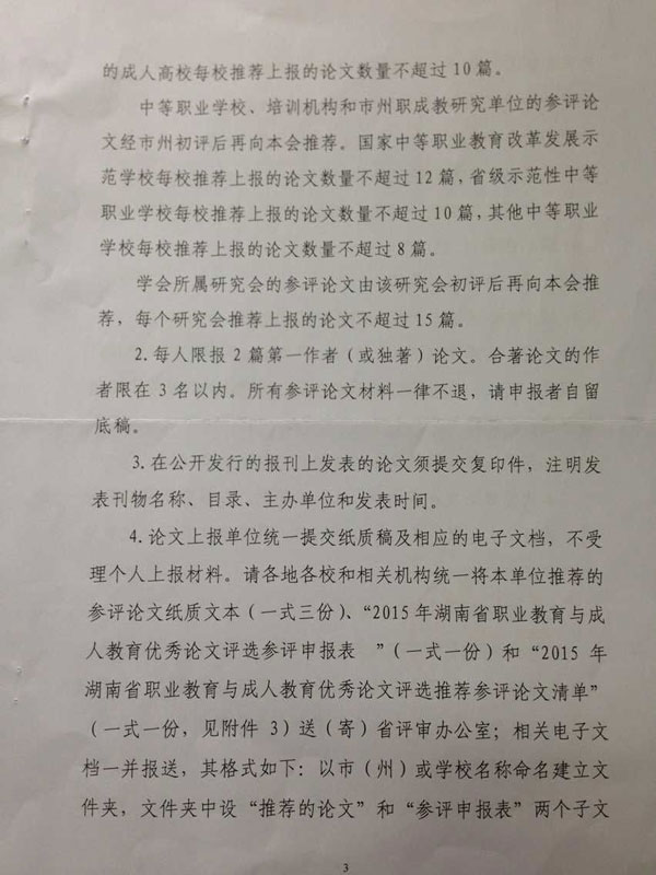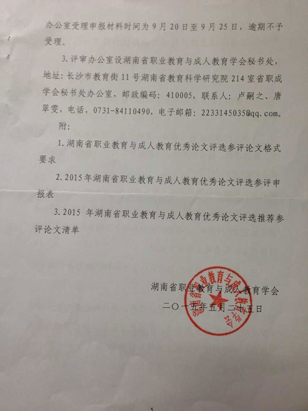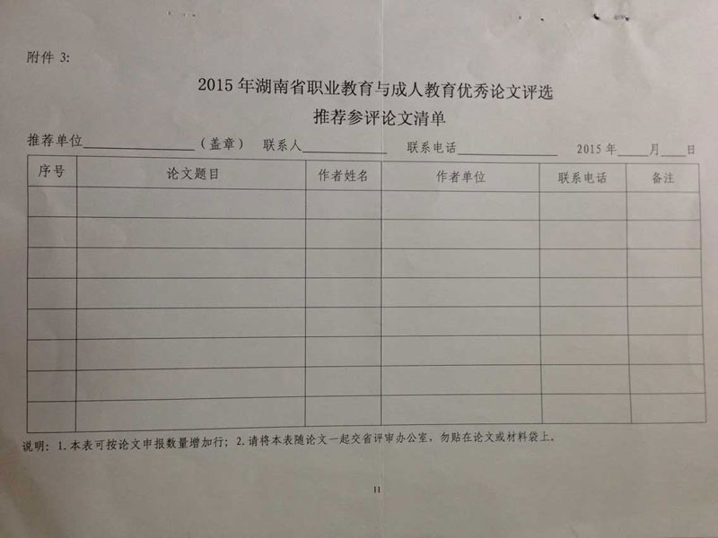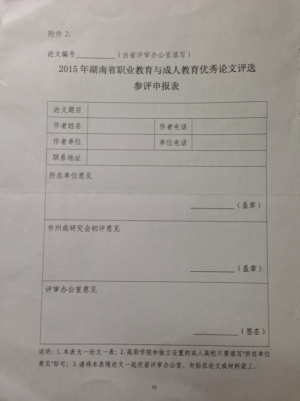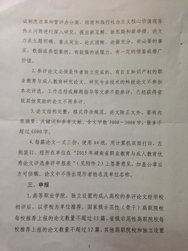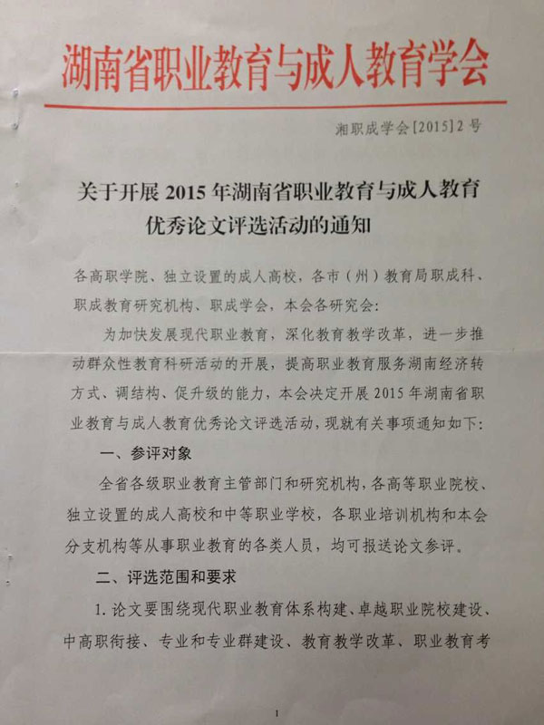关于开展2015年湖南省职业教育与成人教育优秀论文评选活动的通知
