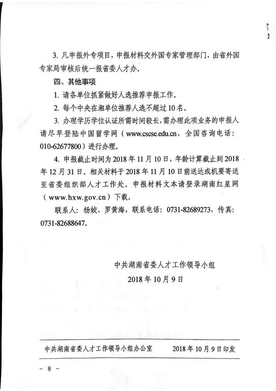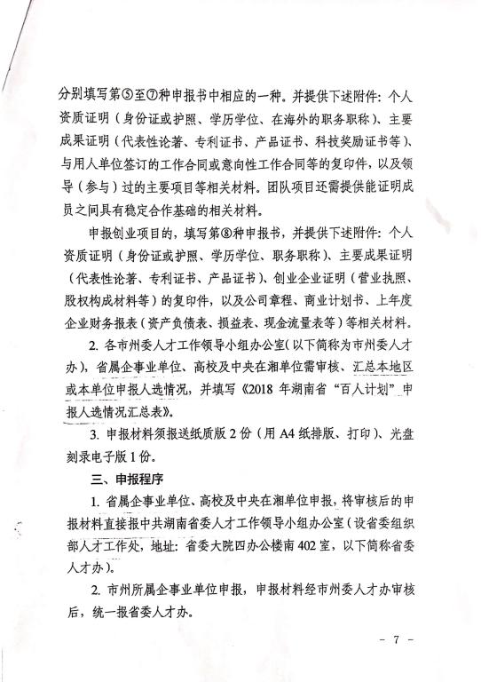 现将《中共湖南省委人才工作领导小组关于开展2018年“百人计划”申报工作的通知》转发给大家。
