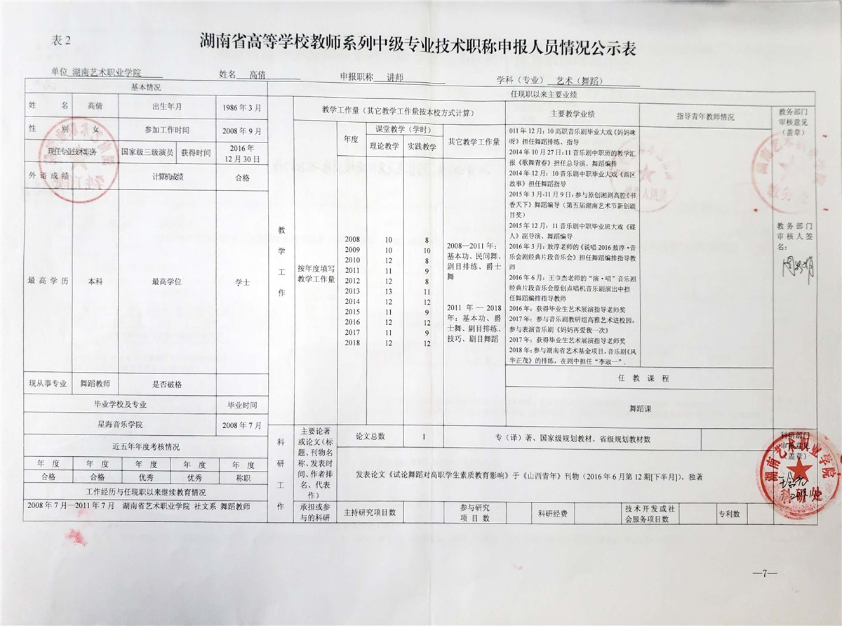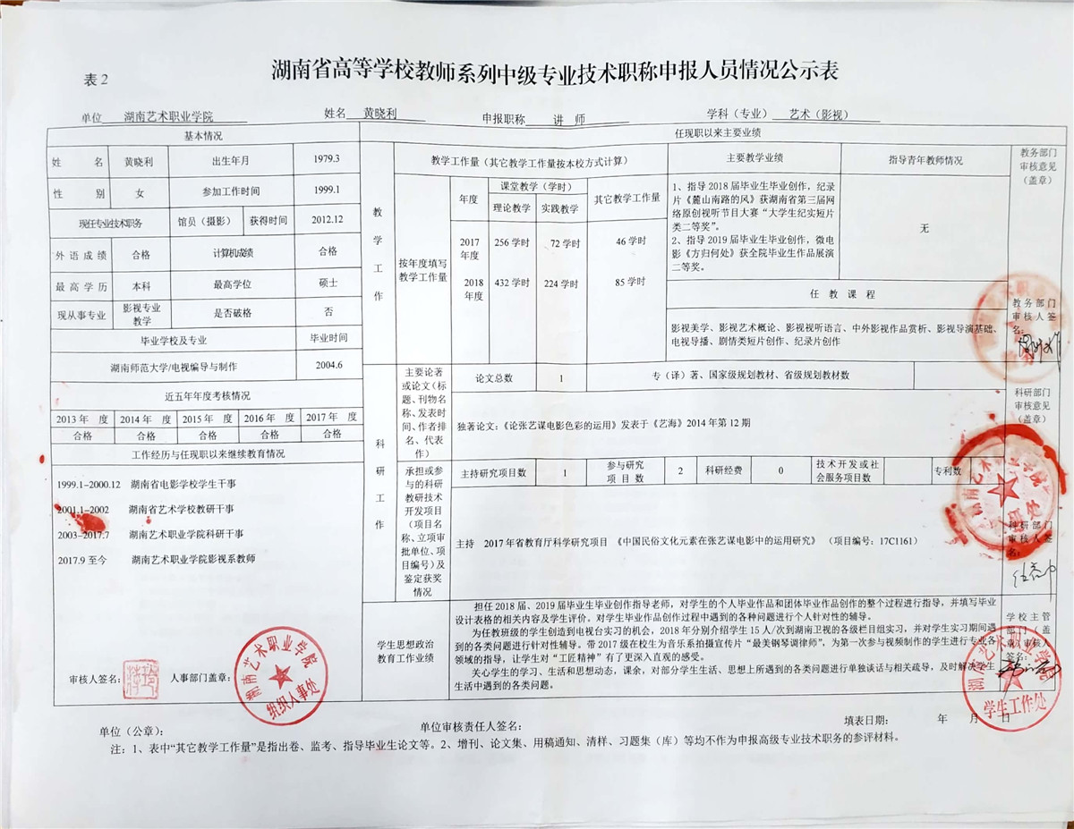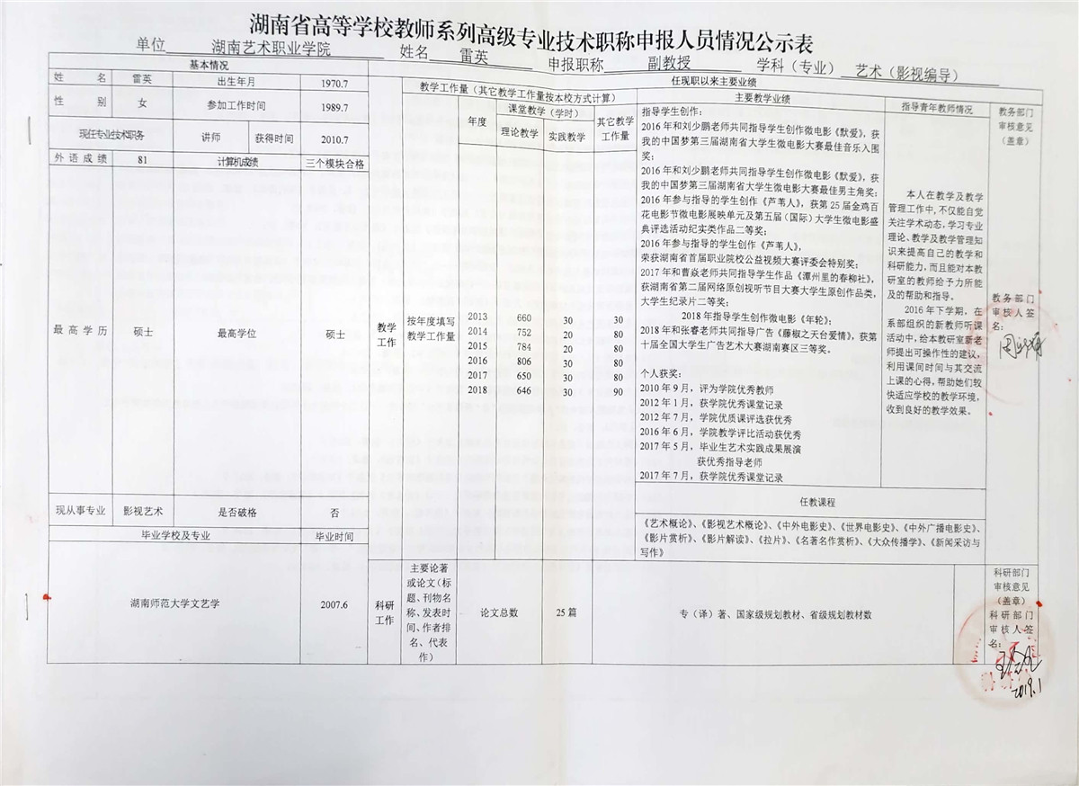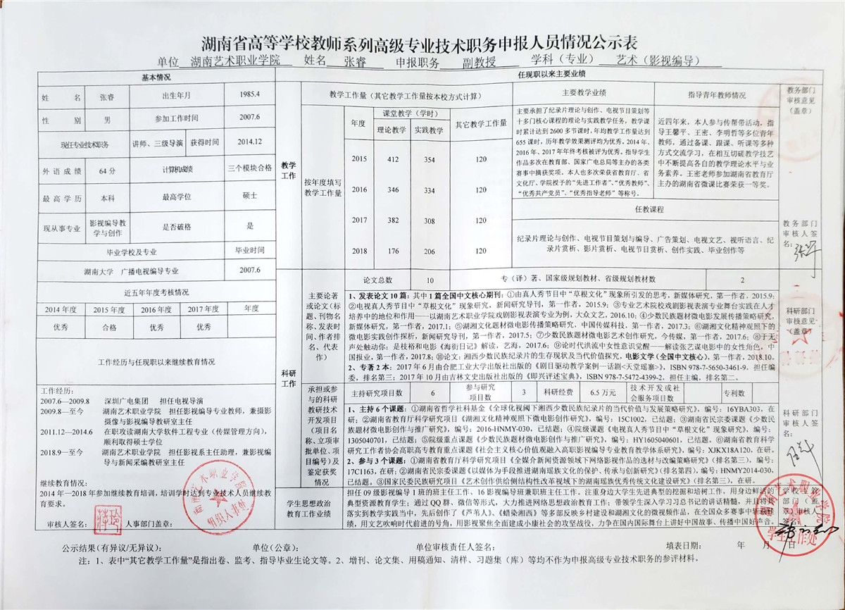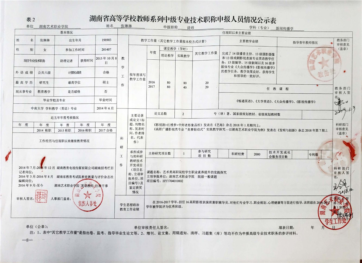学院今年有27位同志申报评审高校教师系列职称,按湘教通【2018】506号《关于做好2018年度高校教师系列专业技术职称评审工作的通知》规定,结合学院湘艺职院【2019】2号《SUNBET申搏2018年高校系列专业技术职称评审工作方案》,现将以下同志的专业技术职称申报情况公示表予以公示。