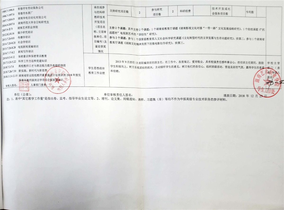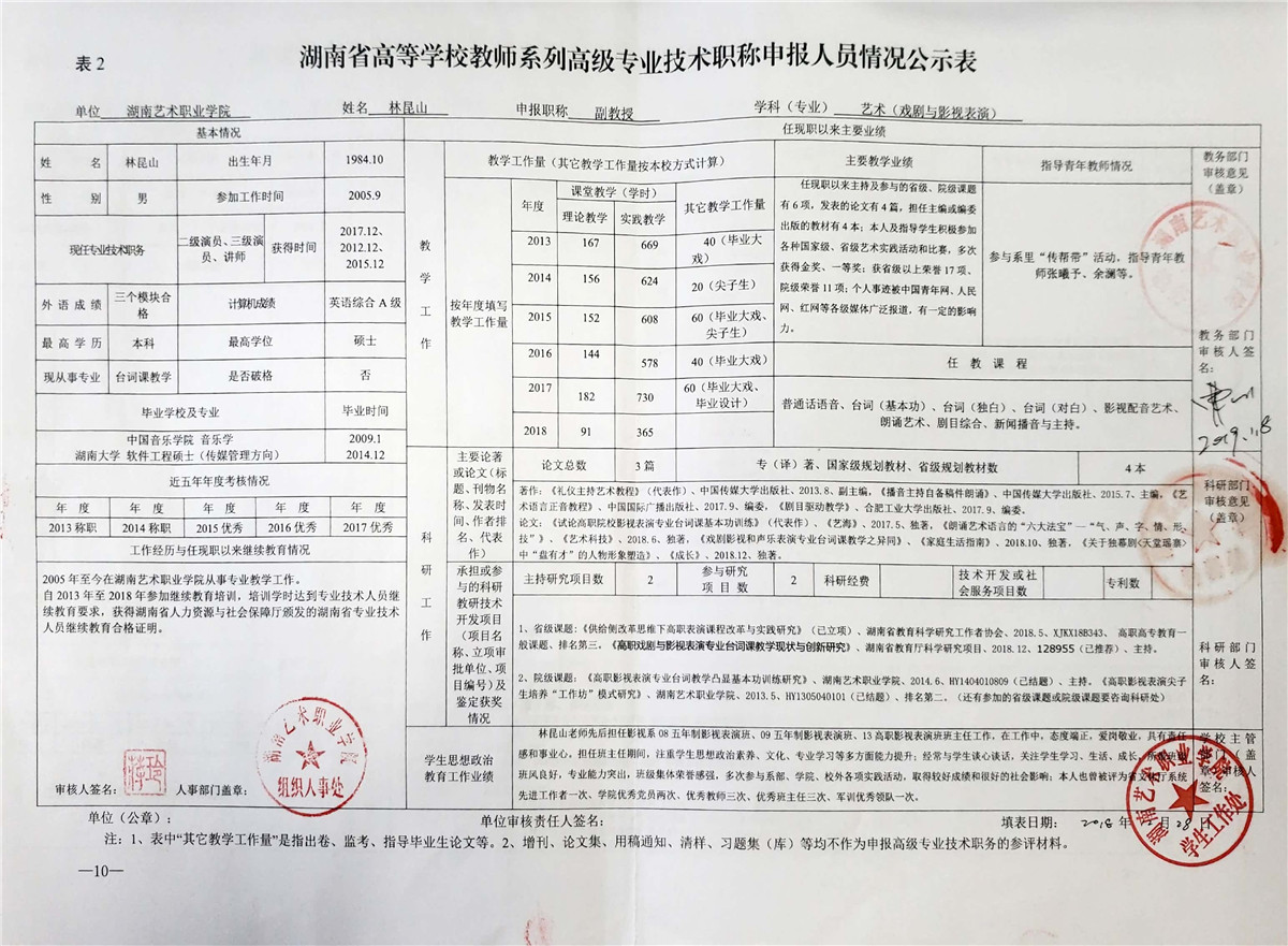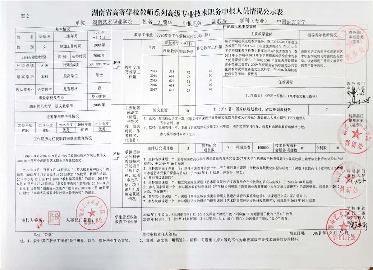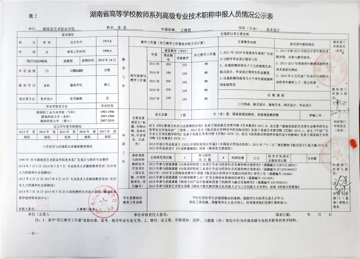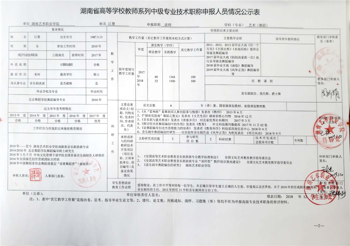 学院今年有27位同志申报评审高校教师系列职称,按湘教通【2018】506号《关于做好2018年度高校教师系列专业技术职称评审工作的通知》规定,结合学院湘艺职院【2019】2号《SUNBET申搏2018年高校系列专业技术职称评审工作方案》,现将以下同志的专业技术职称申报情况公示表予以公示。