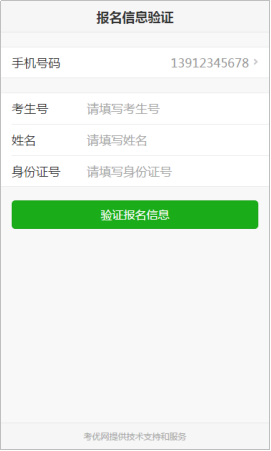 考生填写自己的考生号、姓名、身份证号信息,系统验证考生信息是否正确,是否报考SUNBET。