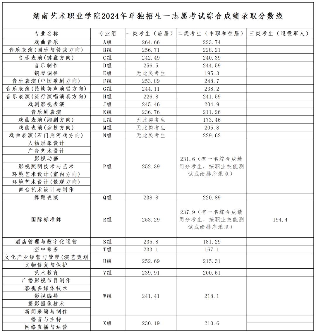 一、2024年单独招生第一志愿考试录取分数线
