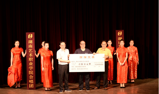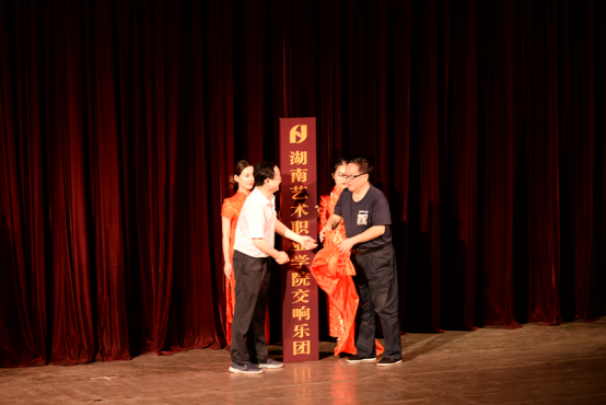 揭牌仪上,在全场热切关注和雷鸣般的掌声中,肖雅瑜同志为交响乐团、合唱团揭牌。肖雅瑜同志、杨汉林同志代表省文化艺术基金会向交响乐团授100万资助支票。鲁雁飞同志参与了揭牌并代表学院接收了资助支票。从这一刻起,学院有了自己的交响乐团,乐团将在今后的校园文化建设、优良育人等方面发挥重要的作用,也会在未来的交流演出中充分展现学院雄厚的办学软实力。