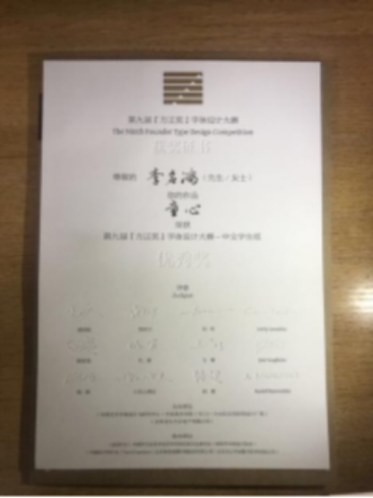 日前,在全国第九届“方正奖”字体设计大赛中,我院影视系16栏目包装班学生李名鸿在其专业教师陈可倪的指导下,凭借着作品《童心》荣获中文学生组优秀奖。此次比赛由中国文字字体设计与研究中心、中央美术学院主办,纽约TDC、中国中文信息学会汉字字形信息专业委员会协办。该赛事秉承着弘扬中华民族古老汉字文化,带动中西文化的交流与融合,发现优秀字体设计人才的宗旨,让每一位钟情文字艺术的字体爱好者,都能展示自己的才能,感受中国字体的深厚内涵。