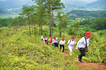 参观过程中成员们沿着当年红军的真实长征路线徒步。
