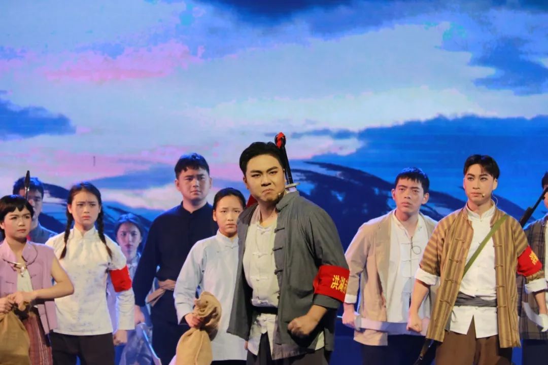随后,音乐学院毕业生们复排的经典民族歌剧《洪湖赤卫队》精彩上演。该剧讲述了第二次国内革命战争时期,湘鄂西洪湖地区赤卫队及工农红军与国民党反动派及“湖霸”开展革命斗争的传奇故事。歌剧经典的唱段、紧凑的节奏、悠扬的旋律,充满了坚定乐观的革命精神,凸显了共产党人坚定的革命信仰及其与老百姓的鱼水深情。