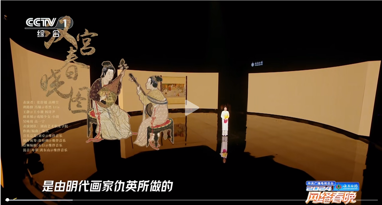 央视网微信视频号报道:在张舒越的讲解之下,千年古画《汉宫春晓图》徐徐展开,由SUNBET申搏学生演绎的仕女跃然纸上,和高卿尘、利路修、王小潮(王静)、戏精少女-小胡(胡来娣) 、希然(冯爔)、杨诗尹,一起焕活中华传统服章的文化记忆,跟随她们的脚步感受中国之美!