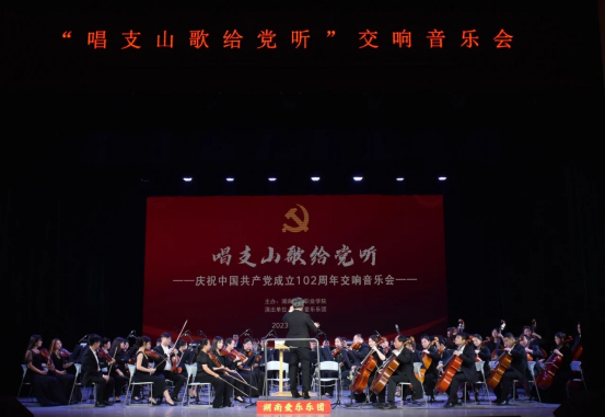 整场音乐会在悠扬的《红旗颂》中拉开序幕,湖南爱乐乐团用音乐表达对党和国家的深情厚爱,学校优秀的青年艺术家们或指挥全场、或弹奏乐器、或引吭高歌,带领现场观众乘着音乐的翅膀纵览祖国河山、砥砺奋斗初心。
