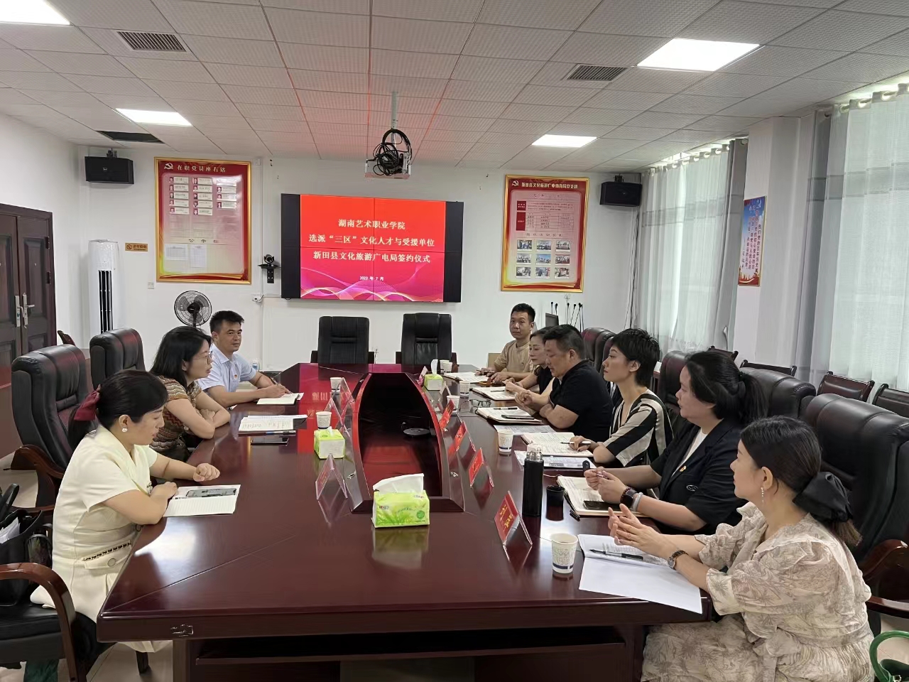 签约仪式结束后,新田县援助组马不停蹄开启了第一阶段的服务指导,专题讲座、实践指导、文化调研等工作有条不紊推进。石门县援助组则计划于八月初正式进驻受援县。