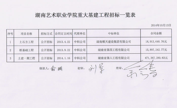 学院2013-2014学年重大基建工程招标一栏表