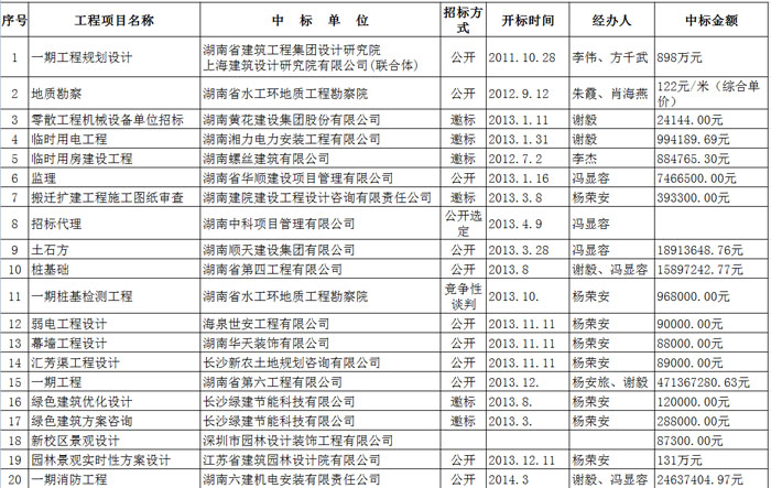 学院搬迁扩建一期工程2013-2015招投标文件明细一览表