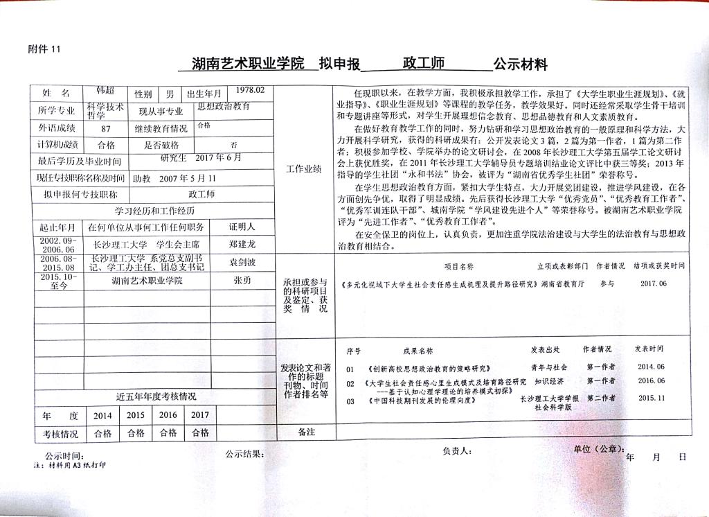 2.公示人员职称申报公示表