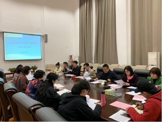 4月29日上午,我院2019年春季学期第二次教学例会在雅艺楼208会议室召开。学院党委书记王章华、副院长黄新平出席会议并讲话,教务处、党委办(宣传统战部)、组织人事处、督导室、艺术实践部、科研处、各系部有关负责人参加了会议。会议由教务处处长曹志超主持。