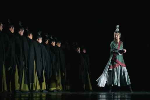 男子群舞《求索》以屈原为主角,以舞代述,以天问之问向未来,体现爱国忧民、自强不息、求真笃学的“求索”精神,化为一种风骨滋养后人,生生不息,砥砺奋进。“路漫漫其修远兮,吾将上下而求索。”滔滔汩罗江水悠悠西去,道不尽远古怀贤之声。