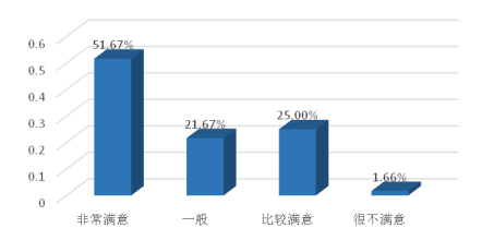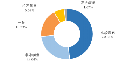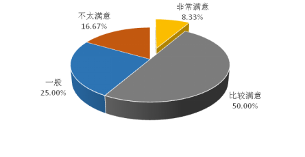 结论:不同毕业生对母校教学实践环节的评价不同,毕业生对教学实践环节的整体满意度为91.66% ,包含非常满意(25.00%),比较满意(48.33%)和一般(18.33%)。