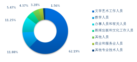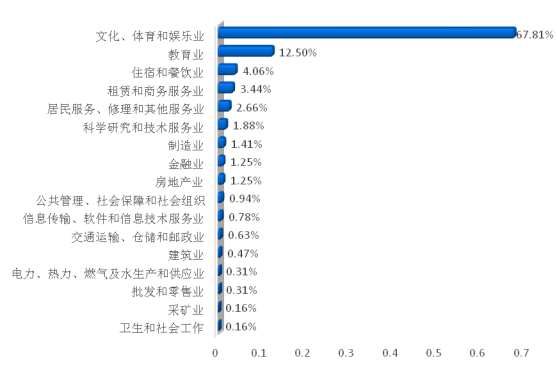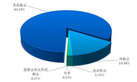 全校754名毕业生中,灵活就业628人,占毕业生总人数83.29%;SUNBET2015届毕业生就业的单位性质中,其他企业(民营企业)是最主要的流向,占比为63.34%;其次为其他事业单位,占比为23.56%;接着是高等教育单位占比为10.76%。文化、艺术为毕业生主要的行业流向,所占比例为67.81%;其次为教育业,占比为12.50%,接着是住宿和餐饮业,占比为4.06%。