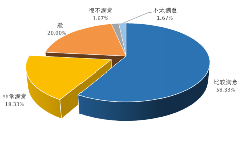 结论:毕业生对母校校园招聘组织工作整体满意度为96.66% ,包含非常满意(18.33%),比较满意(58.33%)和一般20.00%)。