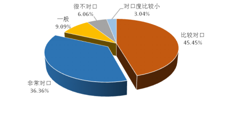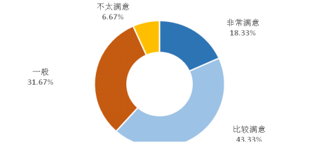 结论:不同毕业生对母校人才培养的满意度评价不均,毕业生对老师授课的整体满意度为91.67% ,包含非常满意(46.67%),比较满意(31.67%)和一般(13.33%)。