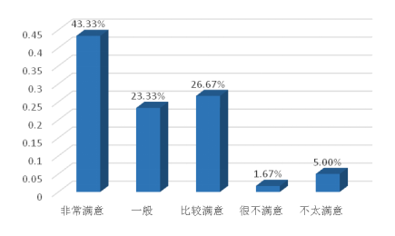 结论:毕业生对母校就业手续办理整体满意度为93.33% ,包含非常满意(43.33%),比较满意(26.67%)和一般(23.33%)。