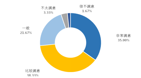 结论:毕业生对母校就业帮扶与推介满意度为95.00% ,包含非常满意(35.00%),比较满意(38.33%)和一般(21.67%)。
