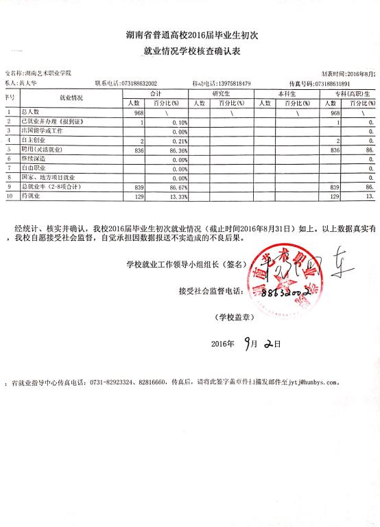 已就业839人中,在本省的就业人数为719人,占总就业人数的85.70 %,其中在本地区(长沙市)就业人数为535人,占总就业人数的63.77%,省外就业人数为120人,占总就业人数的14.30%。