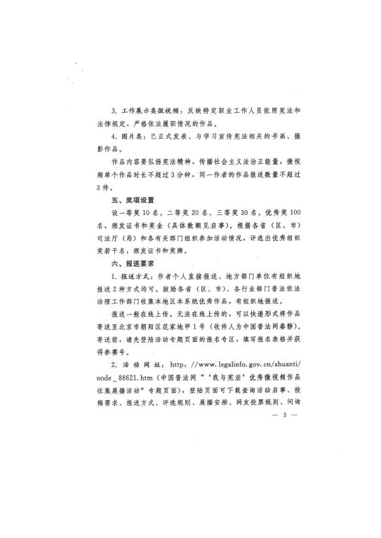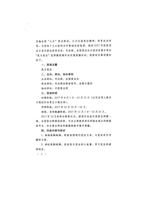 转发司法部、全国普法办关于开展“我与宪法”优秀微视频作品征集展播活动的通知