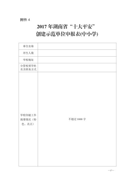 4.2017年湖南省“十大平安”创建示范单位申报表(中小学)